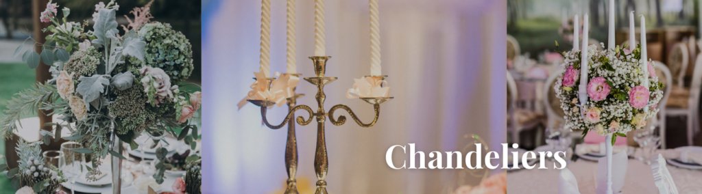 Trônant au centre de vos tables, nos chandeliers déploieront leurs feux et apporteront l'ambiance romantique et chaleureuse qui sublimera vos moments de fête.